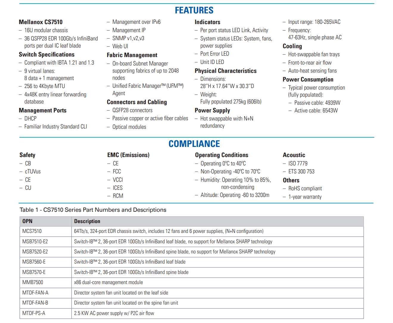 NVIDIA 网络 MCS7510 提供世界上第一个智能交换机,通过共同设计可扩展的分层聚合和减少协议 (SHARP) 技术实现网络内计算。CS7500 系统通过提供 130Tb/s 的全双向带宽和 400n 端口延迟,提供 28U 外形系数中性能最高的织物解决方案。