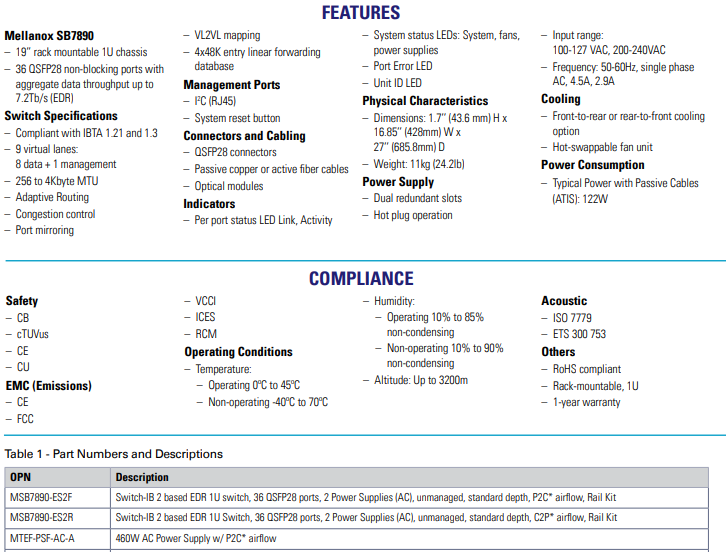 NVIDIA 网络提供世界上第一个智能交换机,通过共同设计可扩展的分层聚合和减少协议 (SHARP) 技术实现网络内计算。SB7890 具有市场上最高的面料性能,高达 7.2Tb/s 的非阻塞带宽,端口到端口延迟为 90ns。