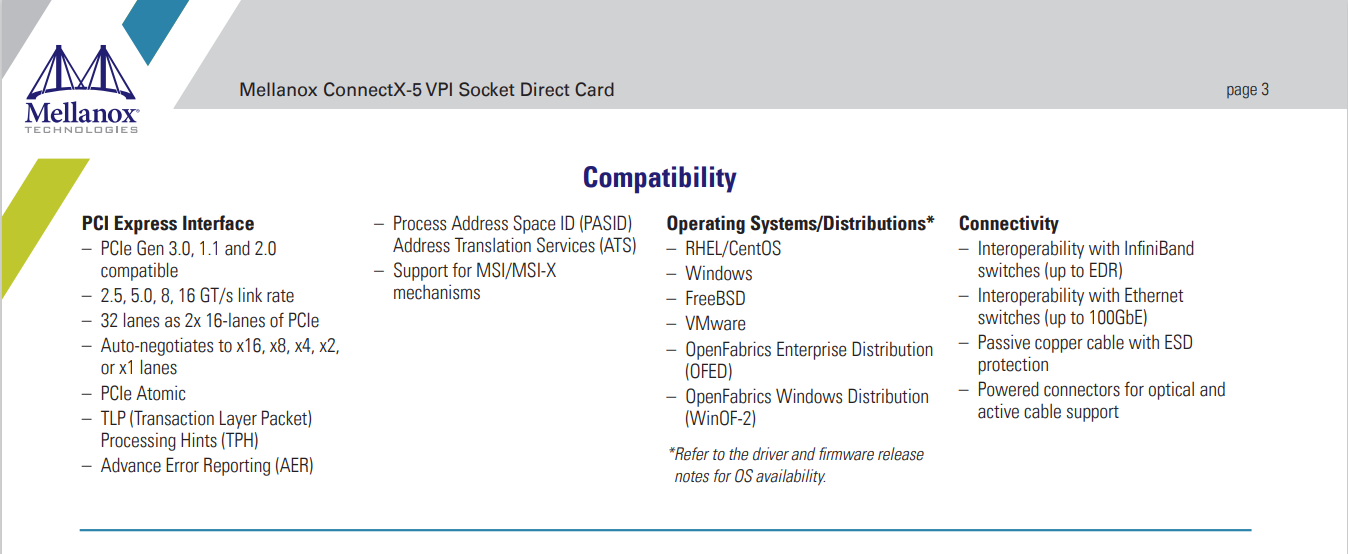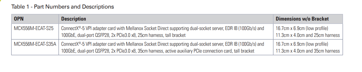 支持 RDMA 的智能网络适配器卡具有先进的应用程序卸载功能,支持 100Gb/s 适用于没有 x16 PCIE 插槽的服务器。