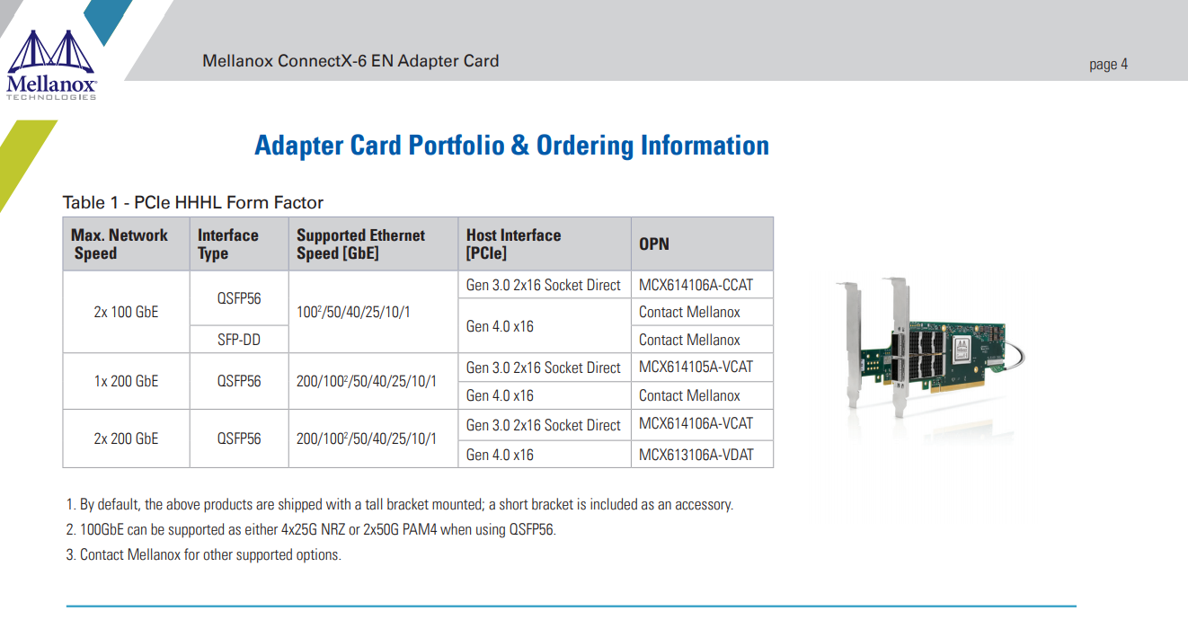 ConnectX-6 是 ConnectX 系列行业领先的适配器卡的开创性补充。除了过去版本的所有现有创新功能外,ConnectX-6 还提供多项增强功能,以进一步提高性能和可扩展性,例如支持 200/100/50/40/25/10/1 GbE 以太网速度和 PCIe Gen 4.0。此外,ConnectX-6 以太网卡可以连接多达 32 车道的 PCIe,实现 200Gb/s 的带宽,即使在 3.0 代 PCIe 系统上也是如此。