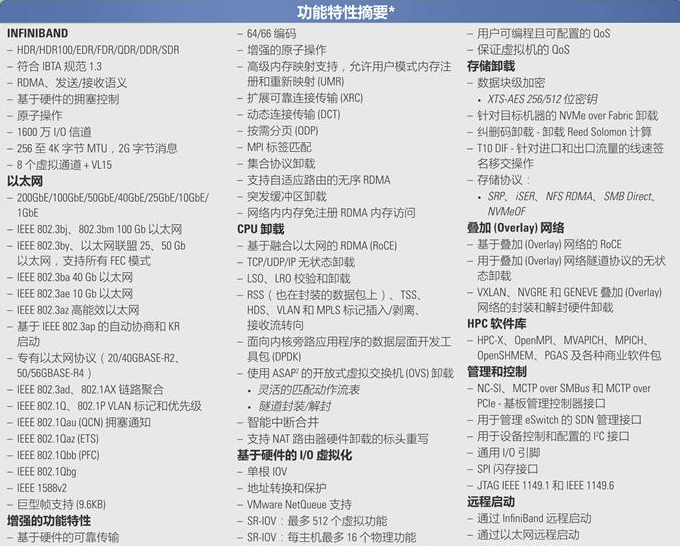 - 每个端口高达HDR100 EDR InfiniBand和100GbE以太网连接